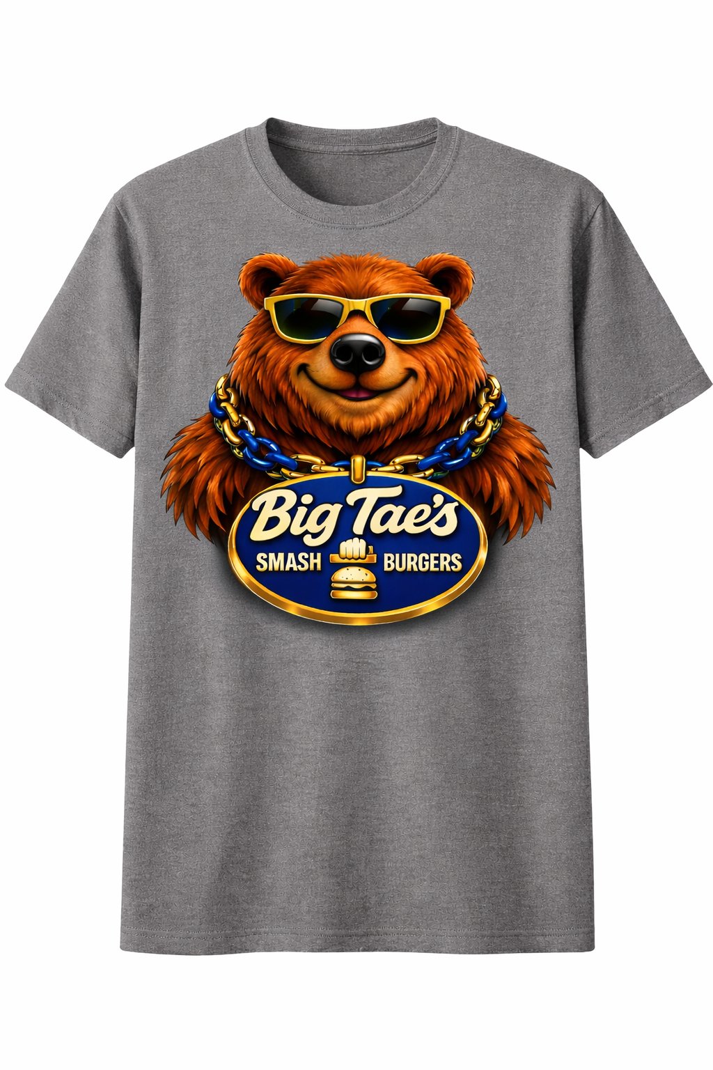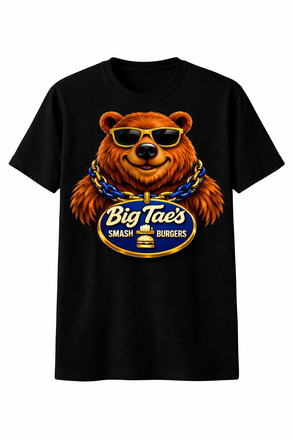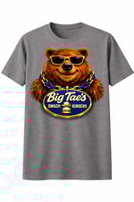 The official Big Tae Eats Super Logo Tee features the bold red-and-yellow emblem that represents the day-one supporters, the folks who’ve been riding with Tae through the reviews, the laughs, the wins, and the grind.
